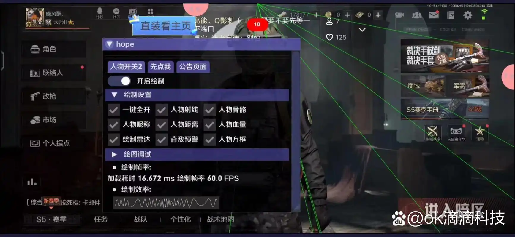 透视功能是辅助的核心亮点之一。它能让玩家清晰看到掩体后的敌人位置、移动轨迹,甚至能识别敌人的装备状态。这意味着你无需盲目探查,在复杂的地图环境中能提前预判危险,避免被偷袭,大大提升生存概率,让每一步行动都