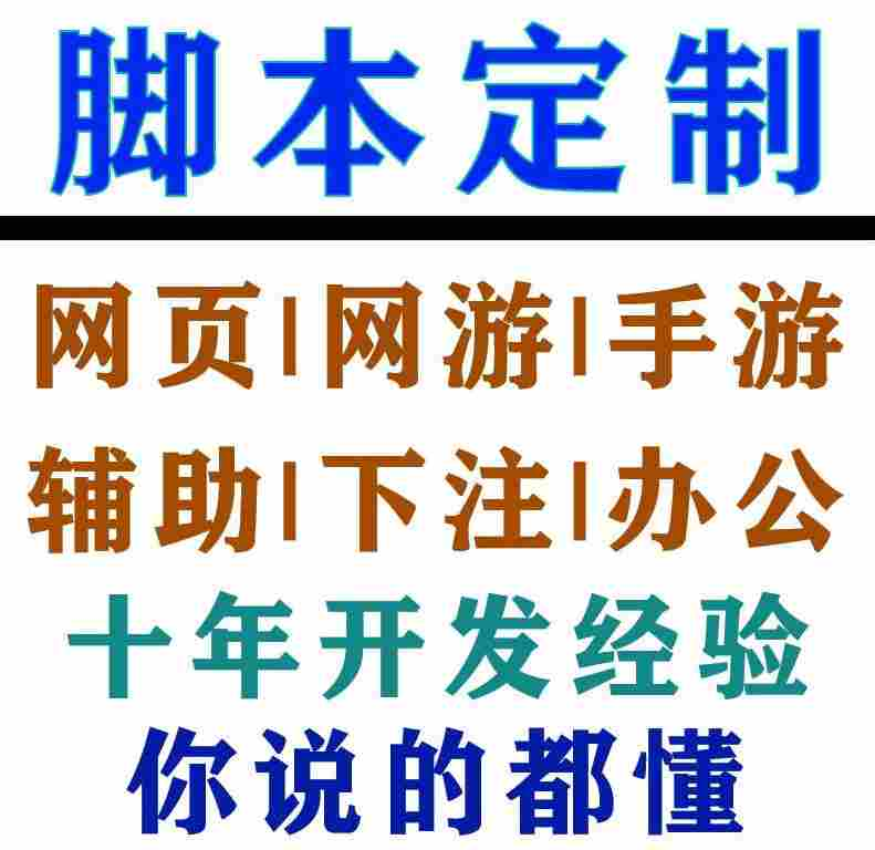 ★定制定做辅助脚本多开外挂软件流程★ 1.请客户提供详细制作需求清单,如:(脚本运行环境、操作流程,及其细节要求等),为了更快的了解您的定制要求,最好提供以视频、 截图、Word、xt形式提供文字、图片或者视频文件,录制视频软件推荐使用KK视频录制,录制好后发给客服。 2本店了解定制需求后,根据制作的难易程度提出报价,以及制作周期等,双方达成共识后,客户即可下单,进入脚本制作阶段。 3.脚